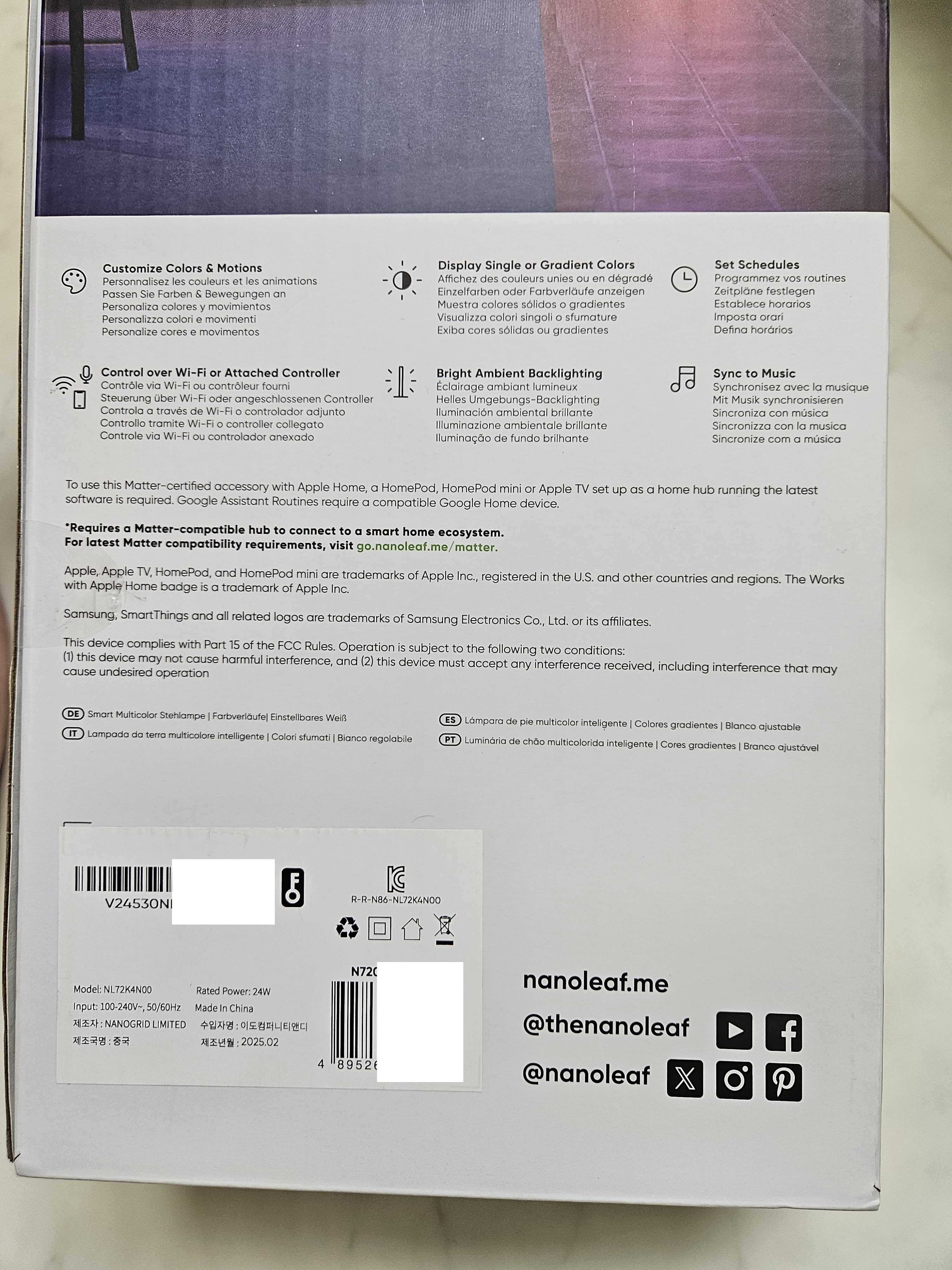 나노리프 플로어 램프 스마트 조명 장스탠드 LED 스탠드 거실등 무드등 뮤직반응 앱조정 감성 네