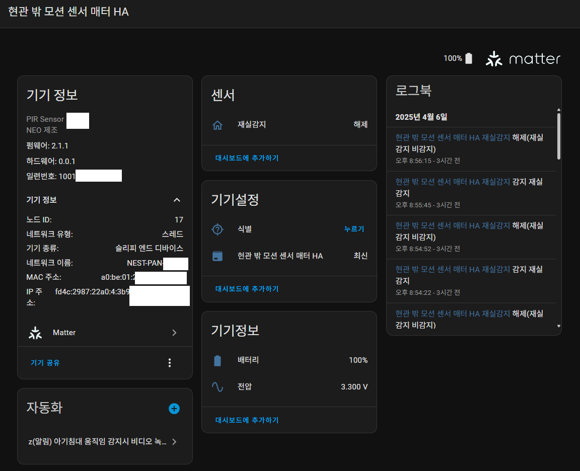 사전에 네이버에서 구매해 둔 배터리로 장착하니 바로 페어링 모드가 돼서 쉽게 HA에 연동을 하였습니다