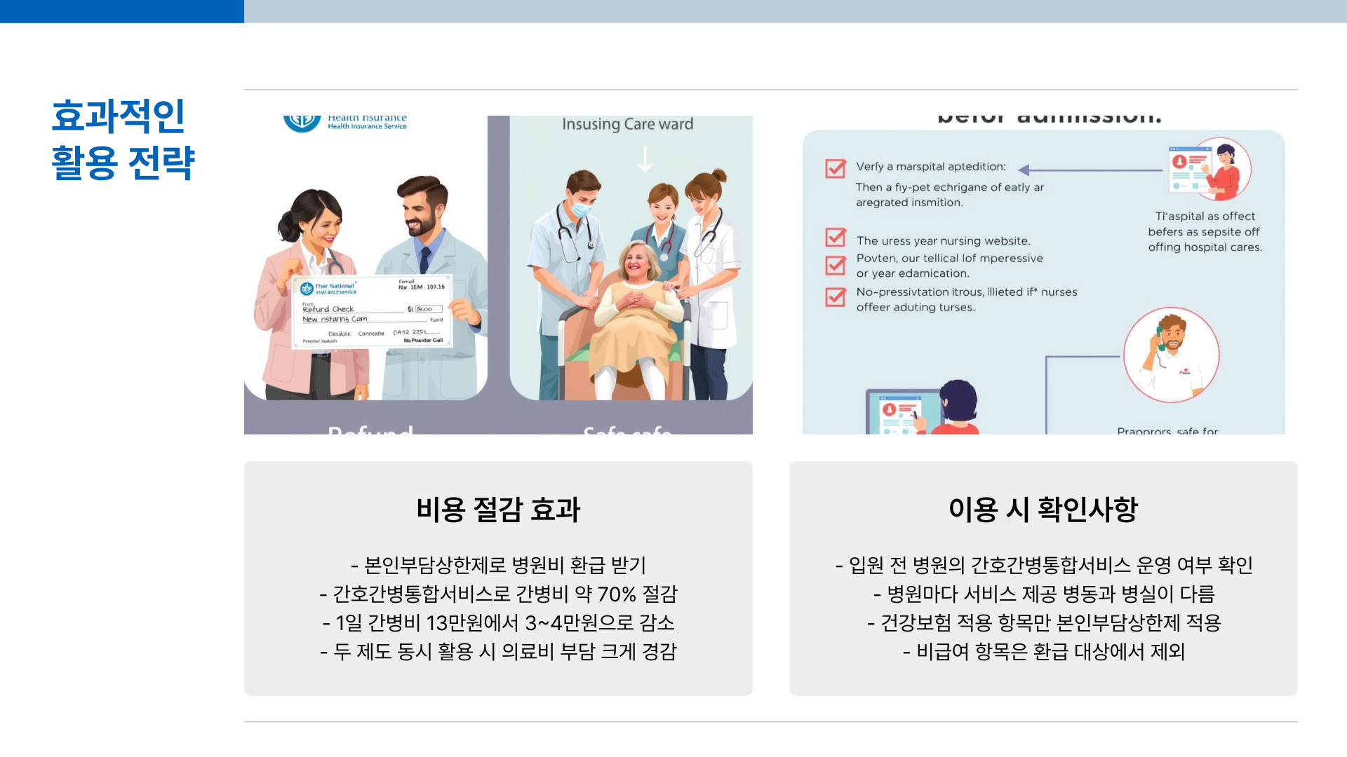 본인부담상한제간호간병통합서비스를 함께 활용하면 병원비와 간병비를 동시에 절감할 수 있습니다.