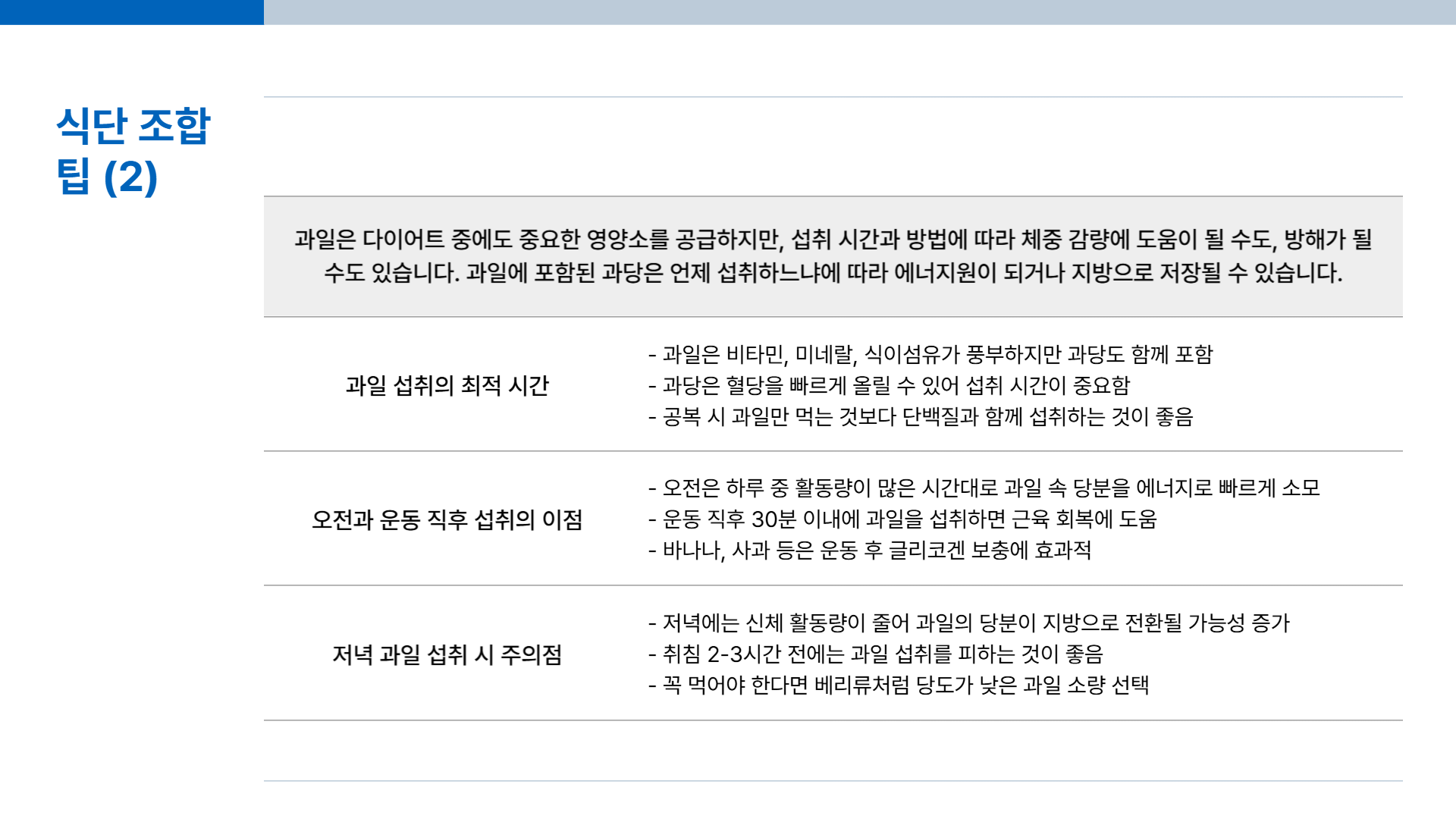 - Tip 2: 과일은 '언제' 먹느냐가 관건