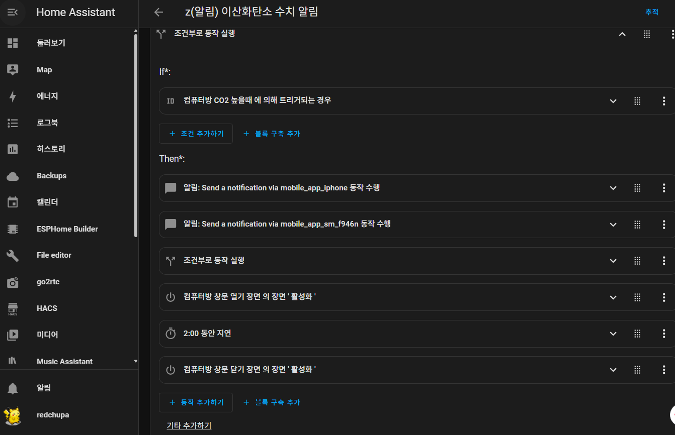 해당 장면을 사용해서 자유롭게 입맛대로 자동화를 셋팅 하시면 됩니다.