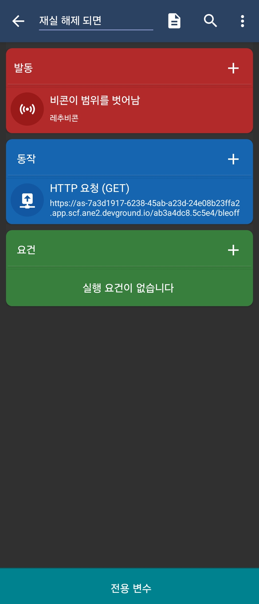 - MacroDroid Pro 앱 (uuid 비콘 장치 스캔 + WebHook 사용)