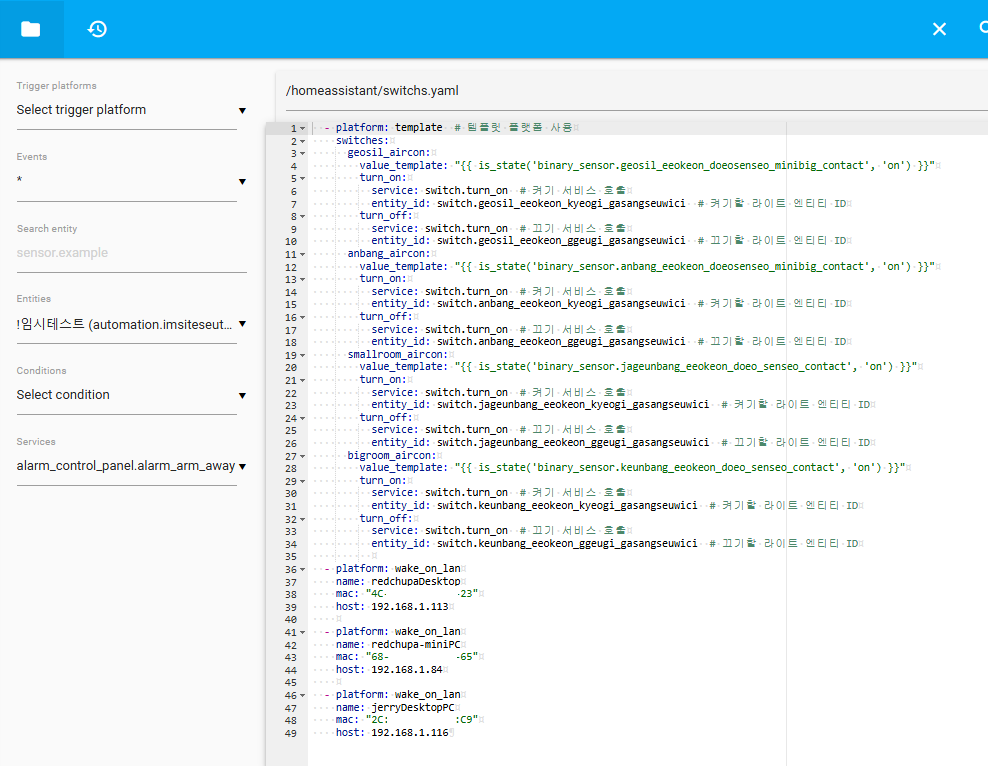 이제 홈어시스턴트에서 WOL 기능을 작동할 스위치를 만들어 줍니다.