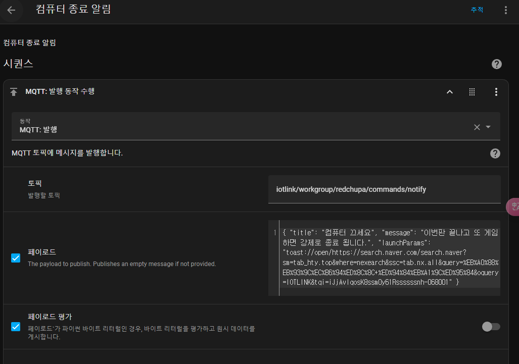 그리고 HA에서 웹훅을 받는 방법은 아직 공부를 못해봤어요...