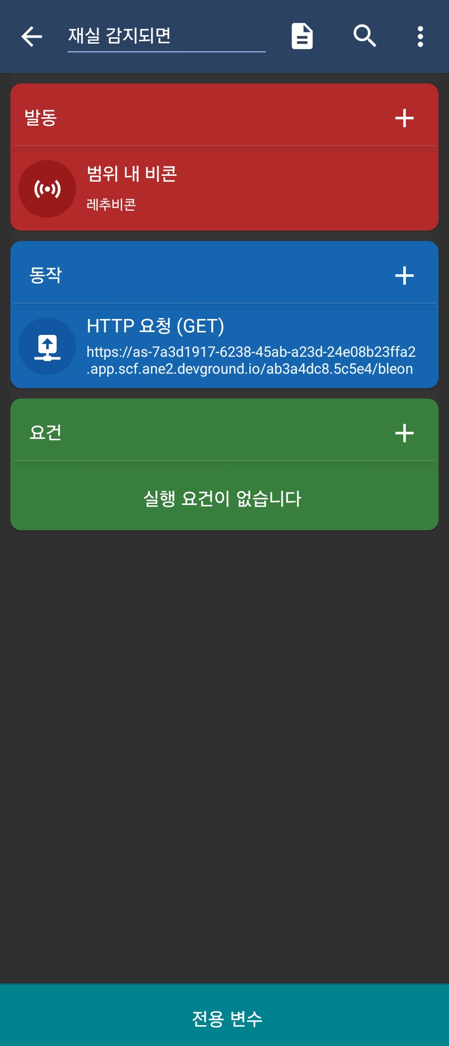 - MacroDroid Pro 앱 (uuid 비콘 장치 스캔 + WebHook 사용)