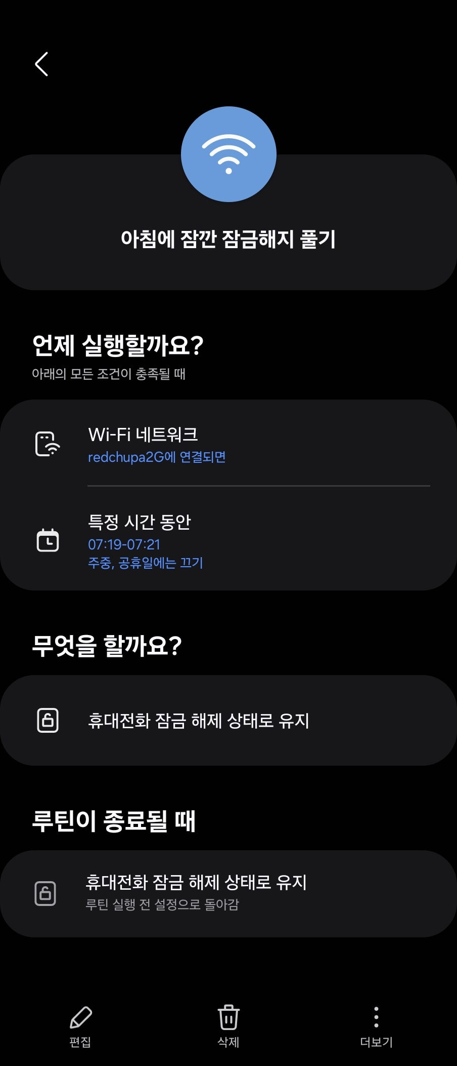 빅스비 루틴(모드및루틴) 앱의 잠금해제 자동화는 설정 안걸어도 되겠네요