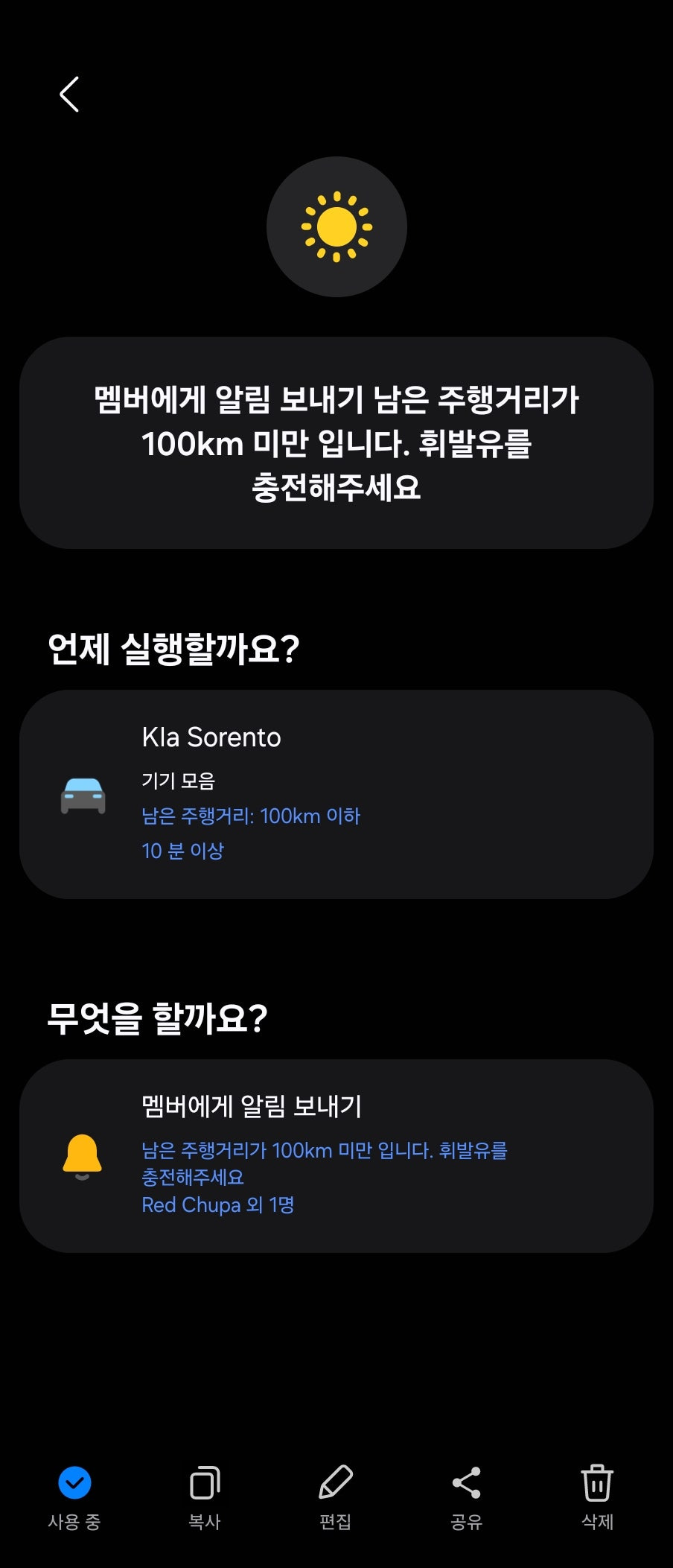 메크로 앱을 사용해서 차량공조를 원하는 시간에 켤 수 있는 방법이 있습니다