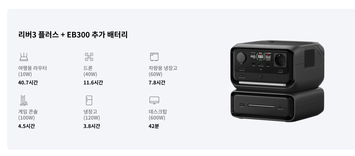 [본사직영] 에코플로우 파워뱅크 리버3 플러스 & EB300 추가 배터리 576Wh - 보조배터리 | 쿠팡