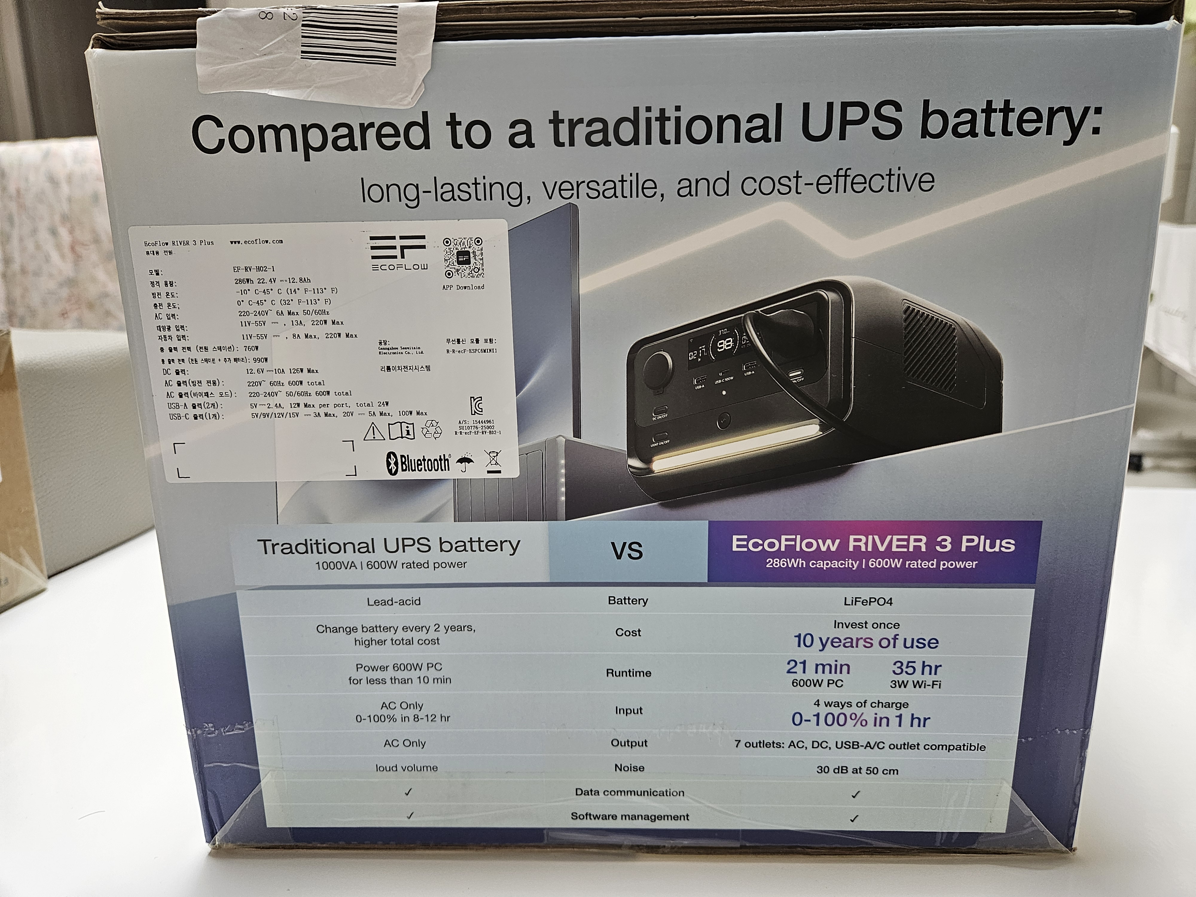 일반 UPS는 12시간이 소요되는 반면, 리버3는 1시간 이내에 완충 되는 것이 놀라웠습니다.