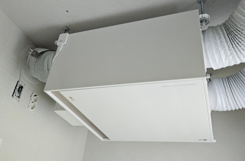 요즘 아파트에는 대부분 '전열교환기' 또는 '세대 환기 장치'가 설치되어 있습니다.