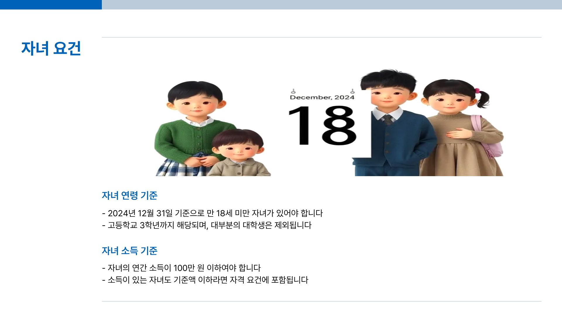 2024년 12월 31일 기준으로, 만 18세 미만의 자녀가 있어야 합니다.
