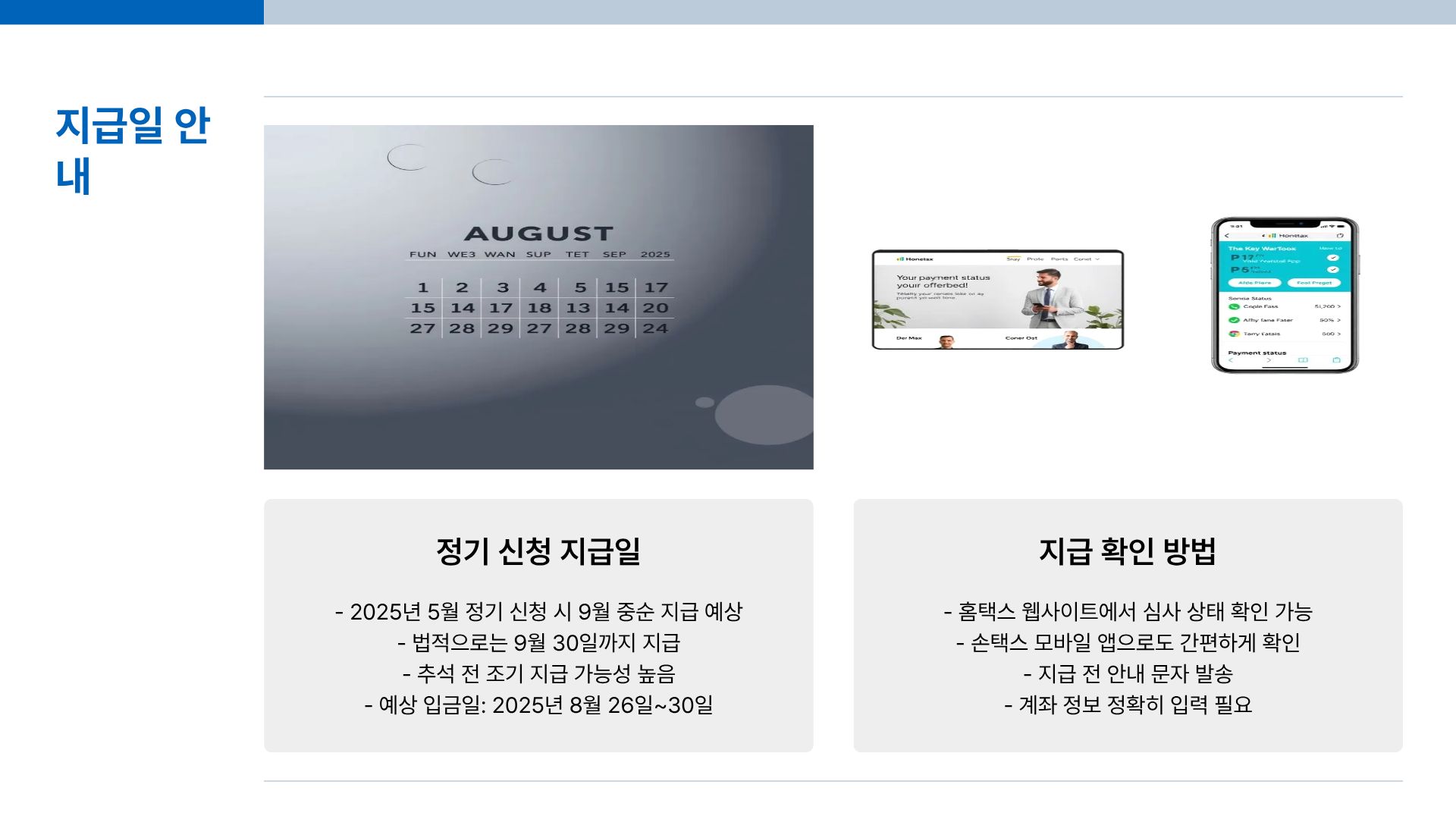 지급일이 다가오면 홈택스 또는 손택스 앱에서 심사 상태를 확인할 수 있으니 안심하세요.