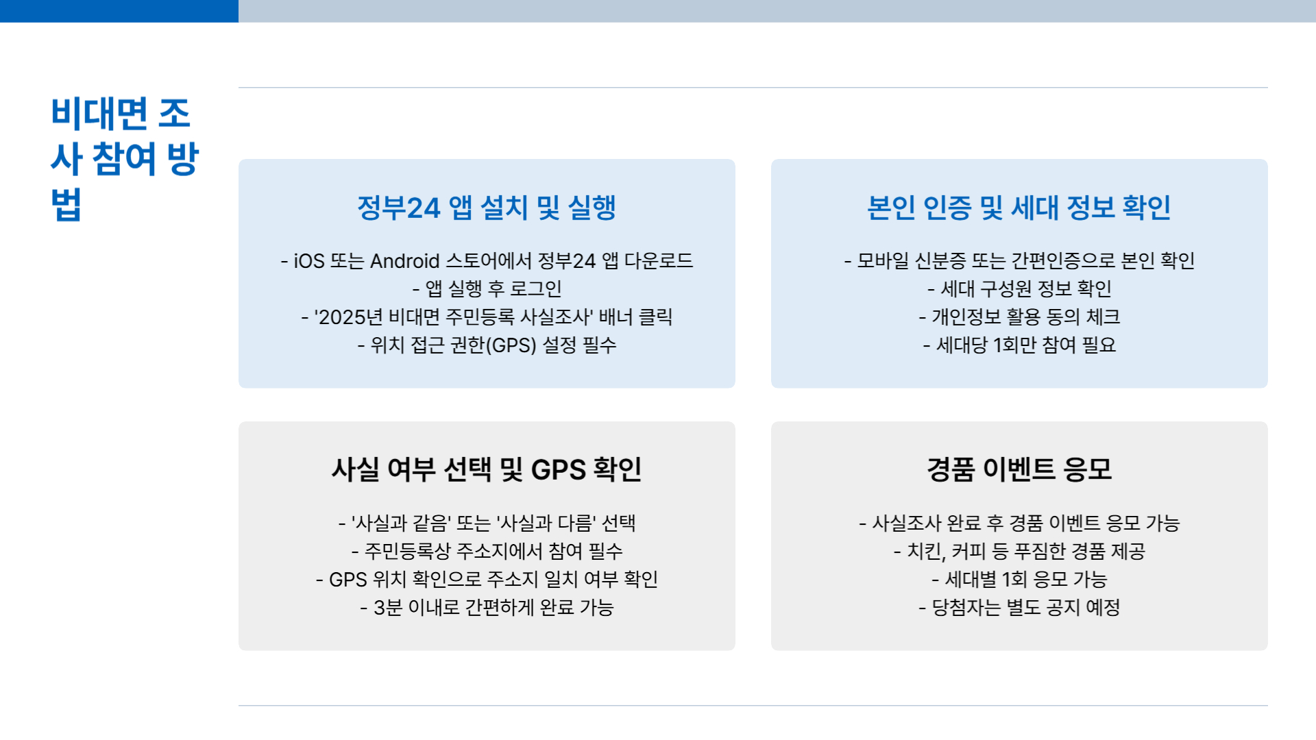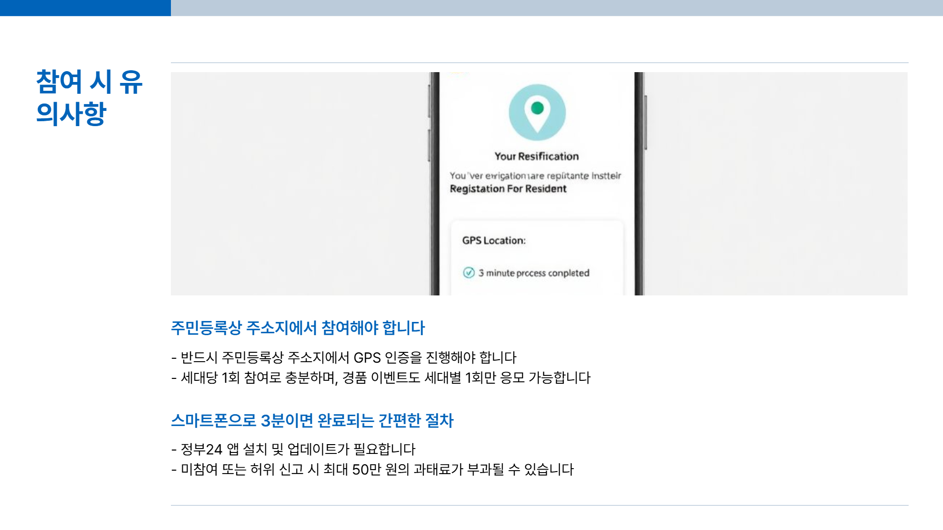 2025년 주민등록 사실조사, 어렵게 생각하지 마세요. 스마트폰으로 3분이면 끝나는 간편한 절차입니다. 미루지 말고 참여해서 과태료도 피하고, 경품도 꼭 챙기세요!