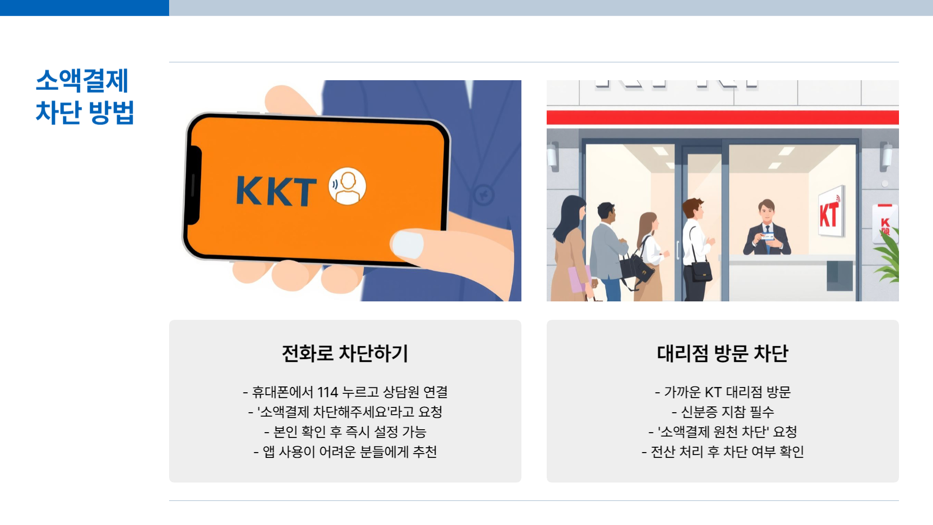 - 신분증 지참 후 '소액결제 원천 차단' 요청