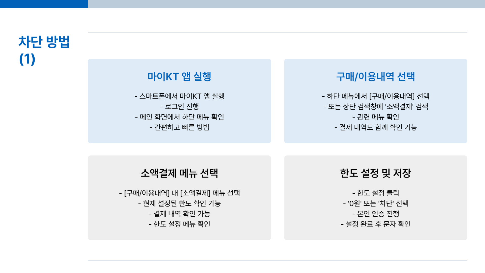 [ ] KT 소액결제 차단 설정 완료