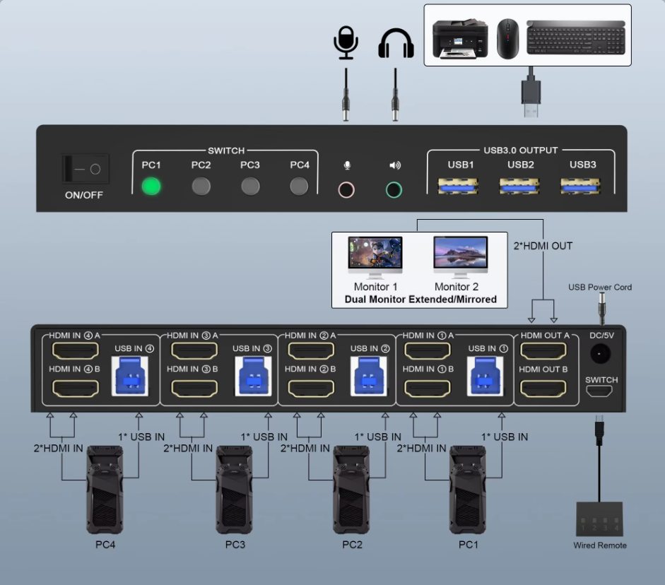 4대의 PC가 2대의 모니터를 사용하기 위해선