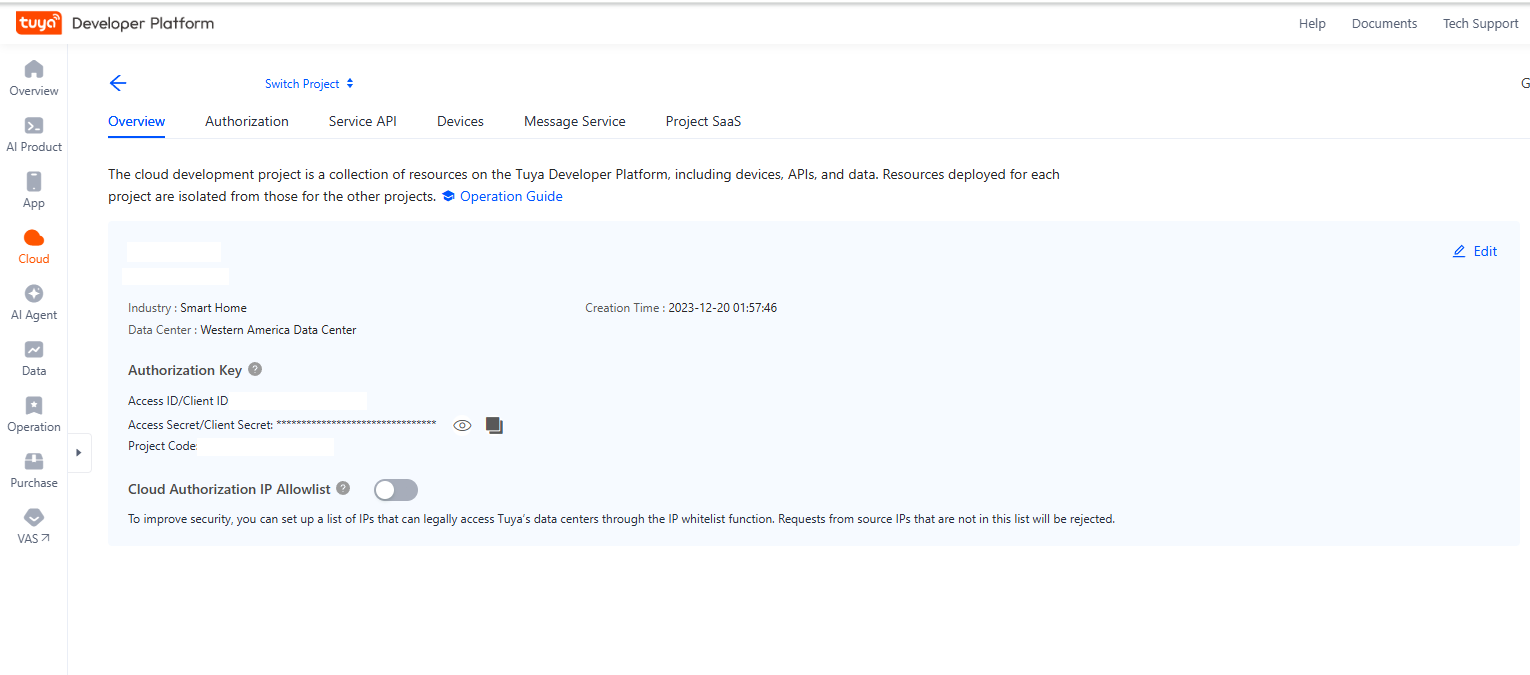 Tuya 개발자 콘솔 접속