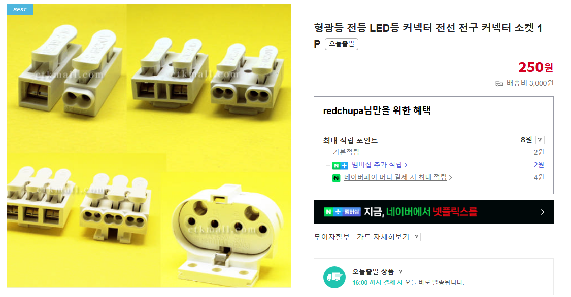 중성선 연결을 위해 커넥터 하나 있어야 합니다. 싼것도 상관 없습니다.