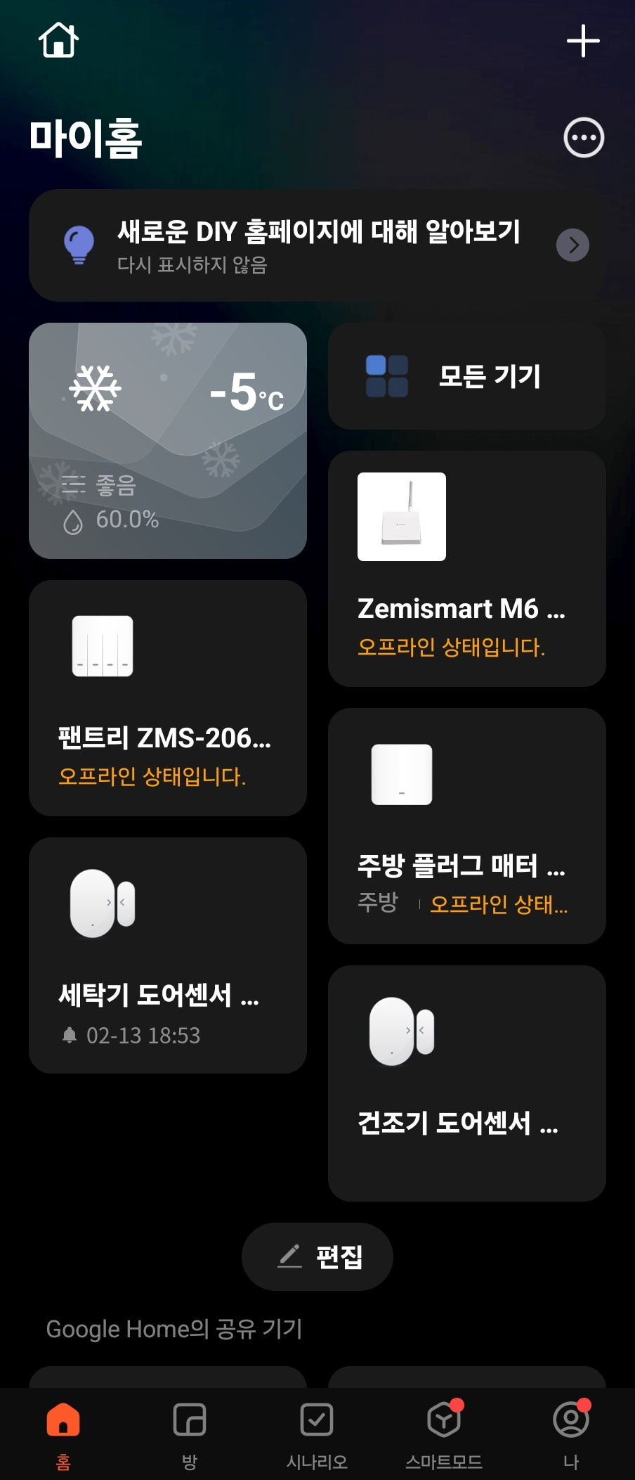매터로 미리 연동해놔서 그런지 연결후에는 자동으로 구글홈과 연동이 되네요