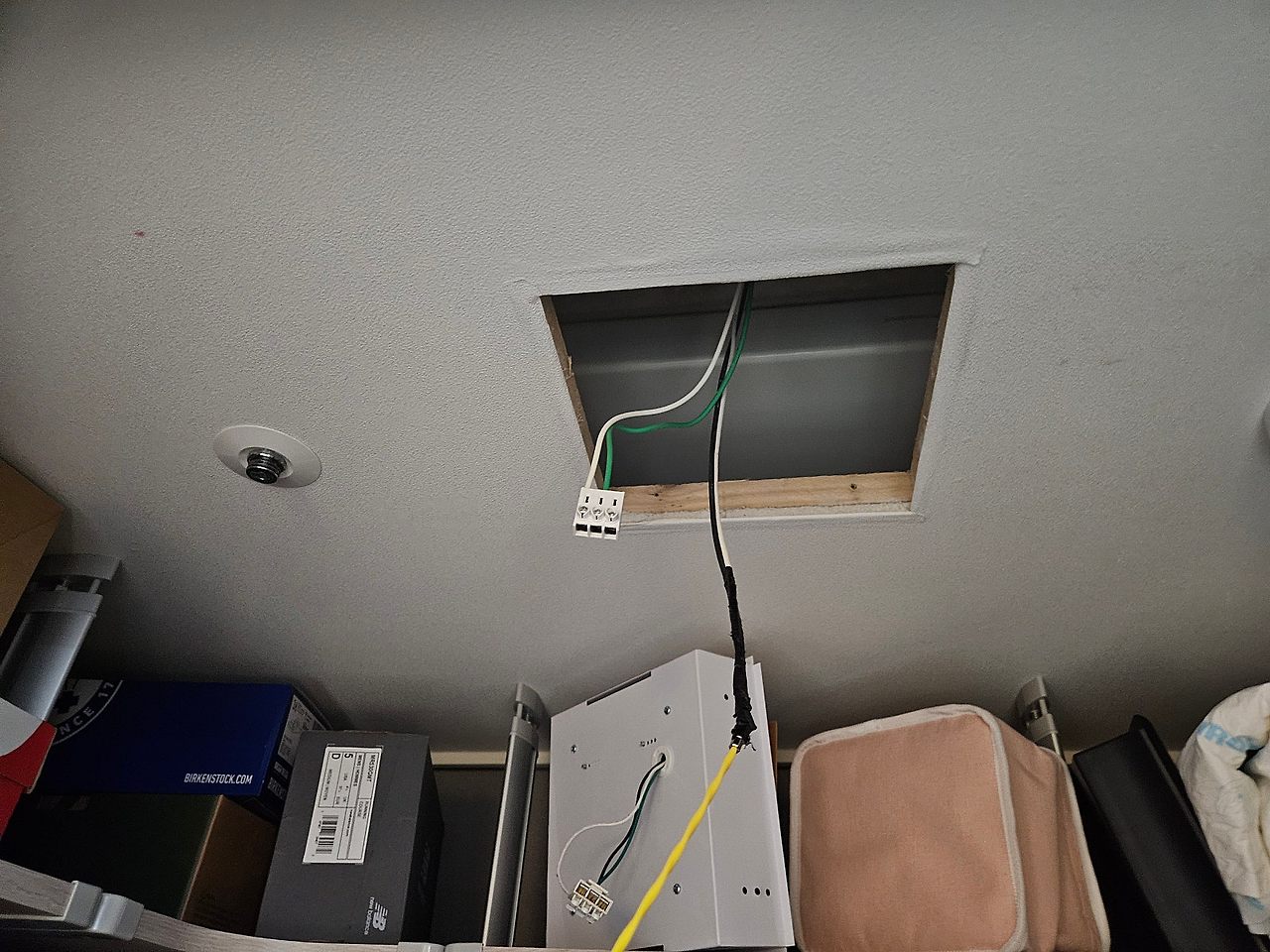이렇게 하고 천장조명을 다시 연결해주면 천장쪽 작업은 끝이납니다.